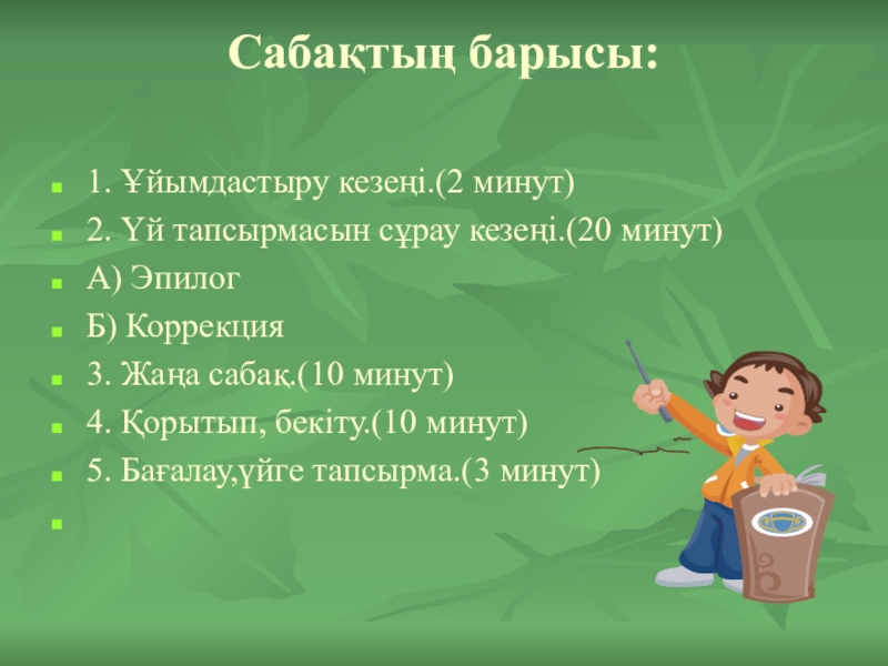 Көрнекілігі: дидактикалық материалдар, слайдтар, плакаттар.