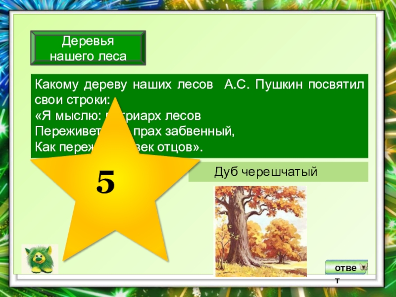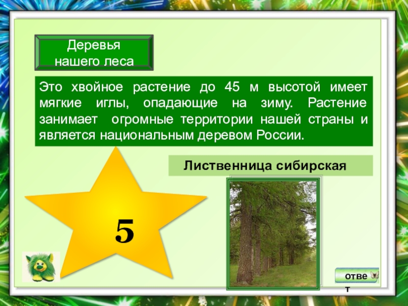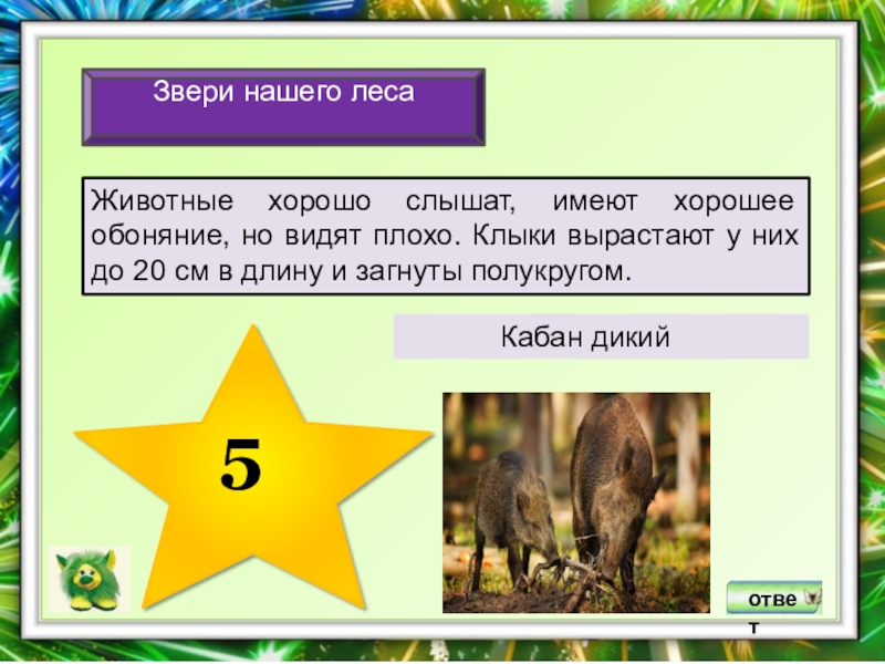 содержит 20 вопросов. Стоимость выбранного вопроса команда узнает по цифре, изображённой на звезде.