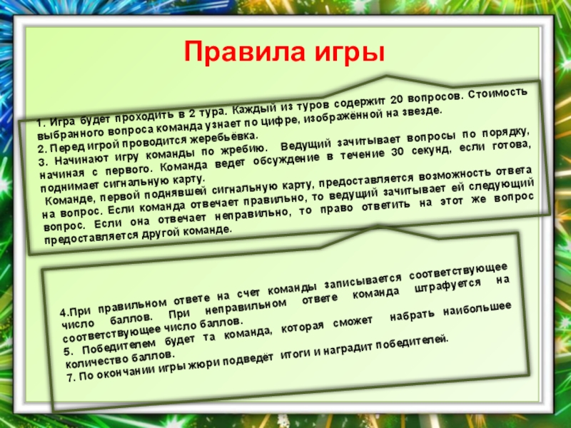 7. По окончании игры жюри подведёт итоги и наградит победителей.