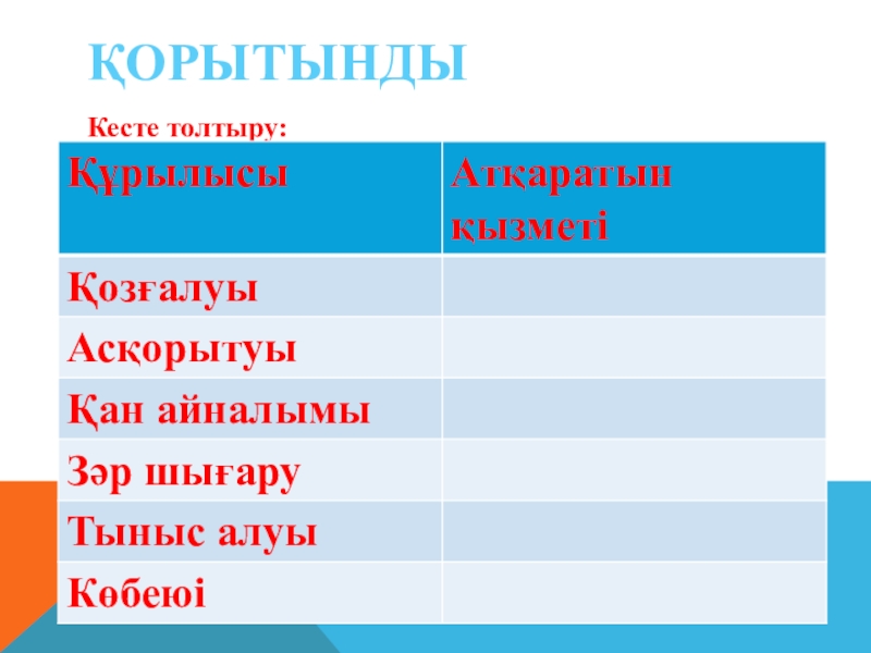 ҚОРЫТЫНДЫКесте толтыру:
