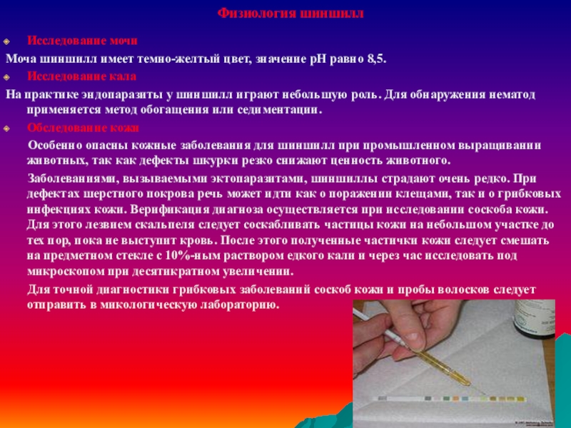 Моча шиншилл имеет темно-желтый цвет, значение рН равно 8,5.