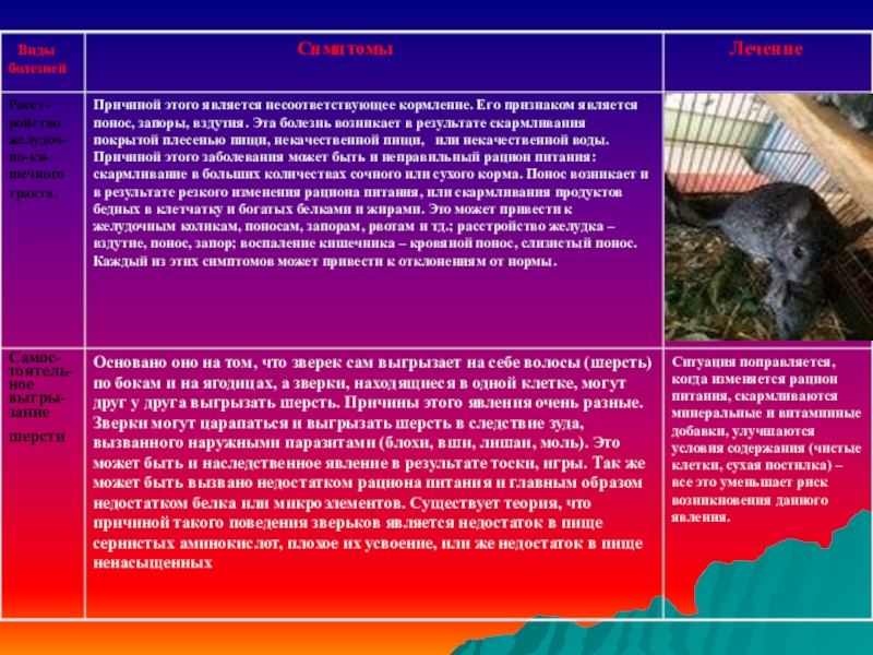 Особенно опасны кожные заболевания для шиншилл при промышленном выращивании животных, так как дефекты шкурки резко снижают ценность животного.