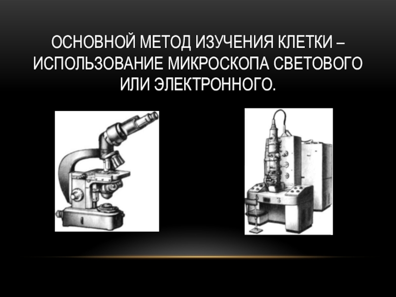 Слайд 11ОСНОВНОЙ МЕТОД ИЗУЧЕНИЯ КЛЕТКИ – ИСПОЛЬЗОВАНИЕ МИКРОСКОПА СВЕТОВОГО ИЛИ ЭЛЕКТРОННОГО.