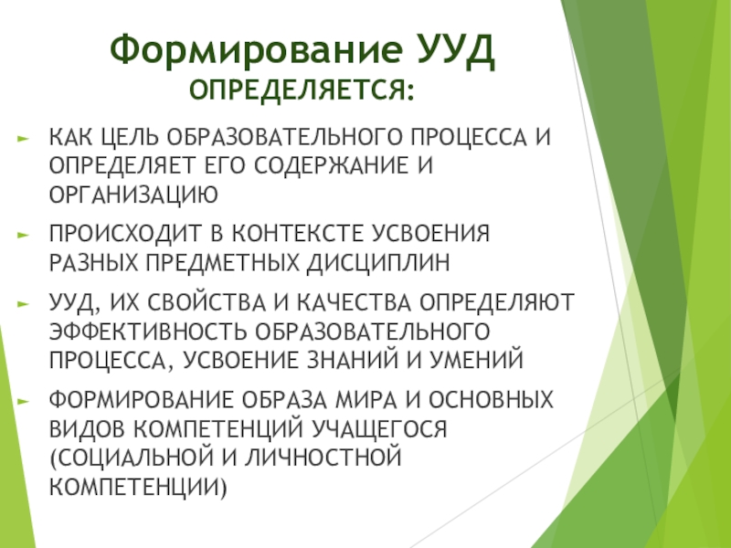 Слайд 13Формирование УУД ОПРЕДЕЛЯЕТСЯ: