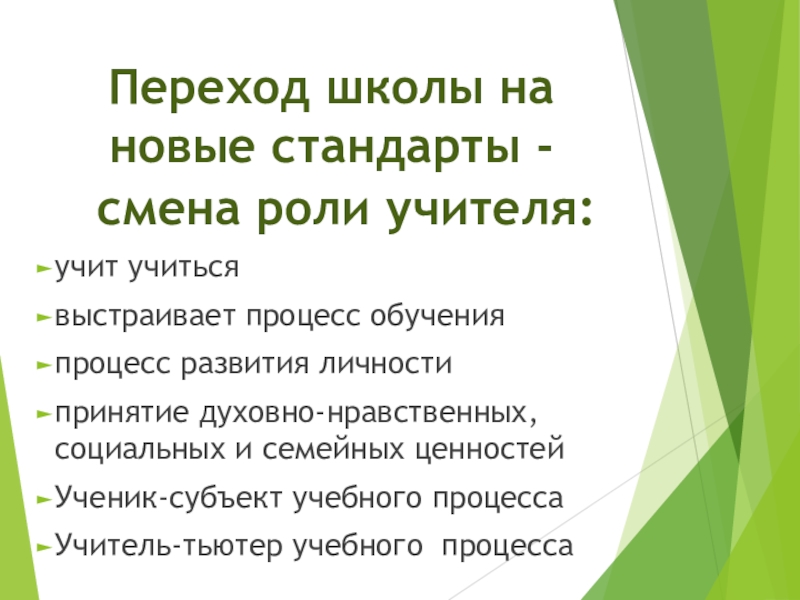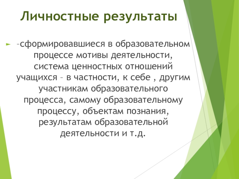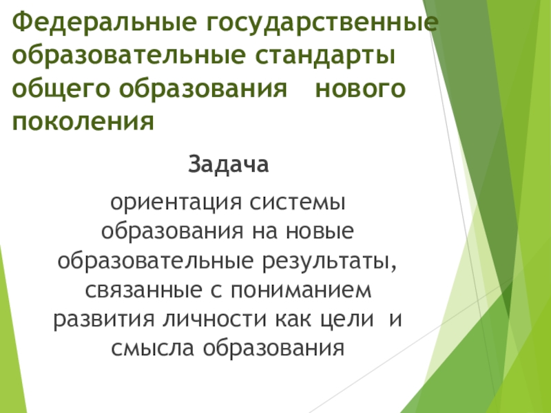 ориентация системы образования на новые образовательные результаты, связанные с пониманием развития личности как цели и смысла образования
