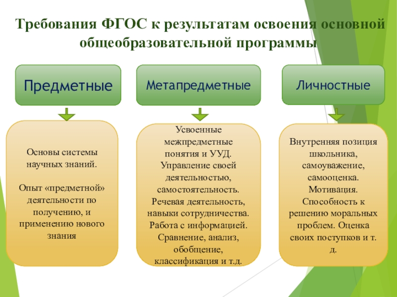 Слайд 16Требования ФГОС к результатам освоения основной общеобразовательной программы