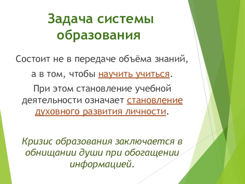 Кризис образования заключается в обнищании души при обогащении информацией.