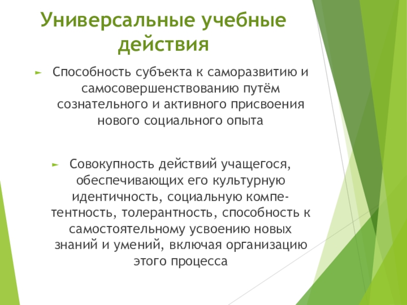 Совокупность действий учащегося, обеспечивающих его культурную идентичность, социальную компе-тентность, толерантность, способность к самостоятельному усвоению новых знаний и умений, включая организацию этого процесса