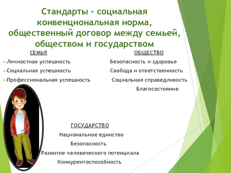 Слайд 9Стандарты - социальная конвенциональная норма, общественный договор между семьей, обществом и