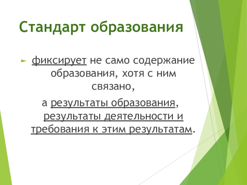 а результаты образования, результаты деятельности и требования к этим результатам.