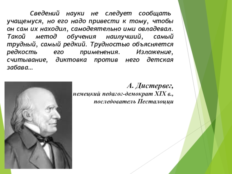 Слайд 2 Сведений науки не следует сообщать учащемуся, но его надо