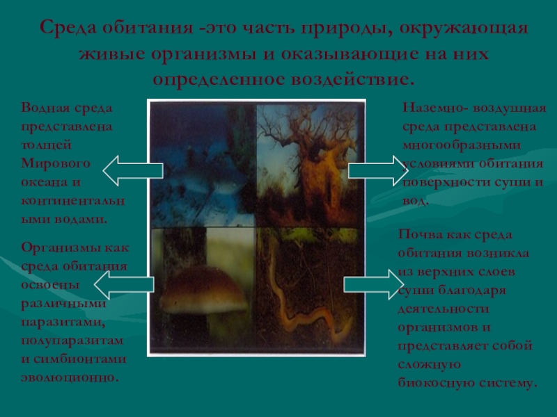 Слайд 8Среда обитания -это часть природы, окружающая живые организмы и оказывающие на
