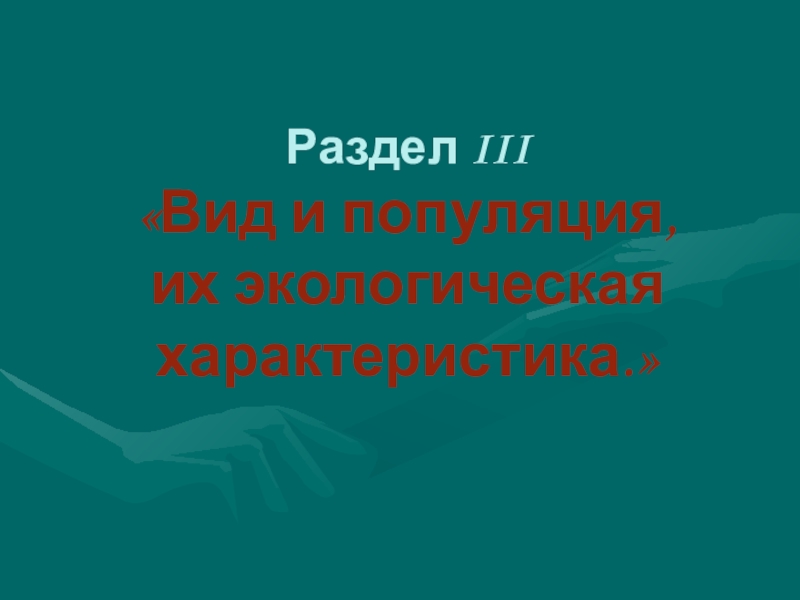 Раздел III «Вид и популяция, их экологическая характеристика.»