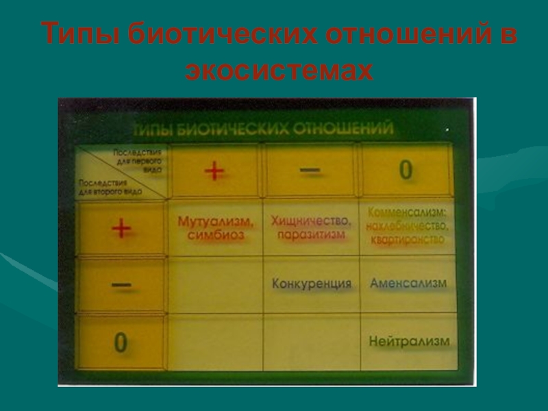 Биотические факторы -воздействие живых организмов друг на друга. При этом взаимоотношения могут быть внутривидовыми и межвидовыми.