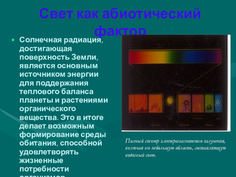 энергии для поддержания теплового баланса планеты и растениями органического вещества. Это в итоге делает возможным формирование среды обитания, способной удовлетворять жизненные потребности организмов.