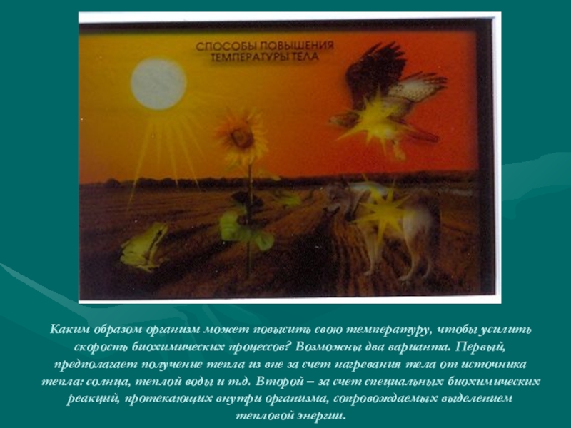 Слайд 16Каким образом организм может повысить свою температуру, чтобы усилить скорость биохимических