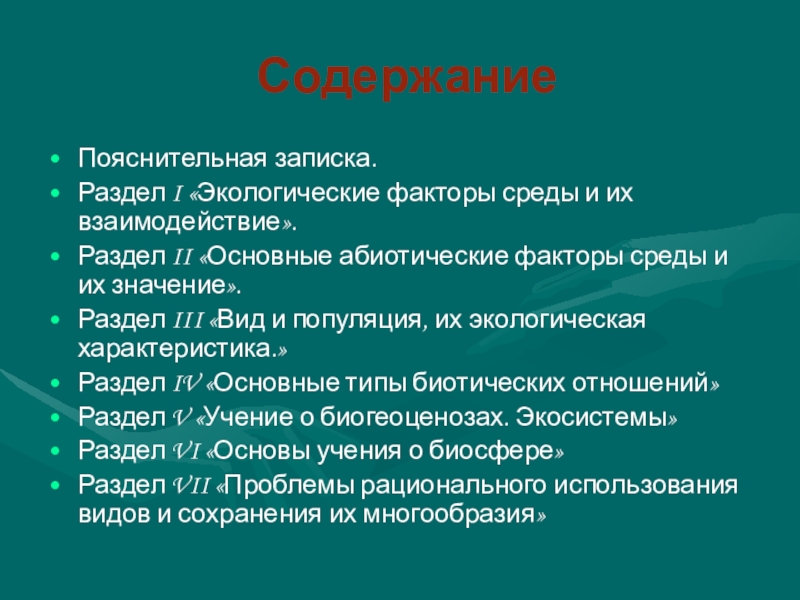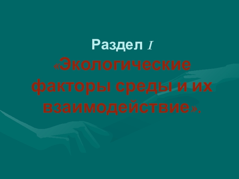 Раздел I «Экологические факторы среды и их взаимодействие».