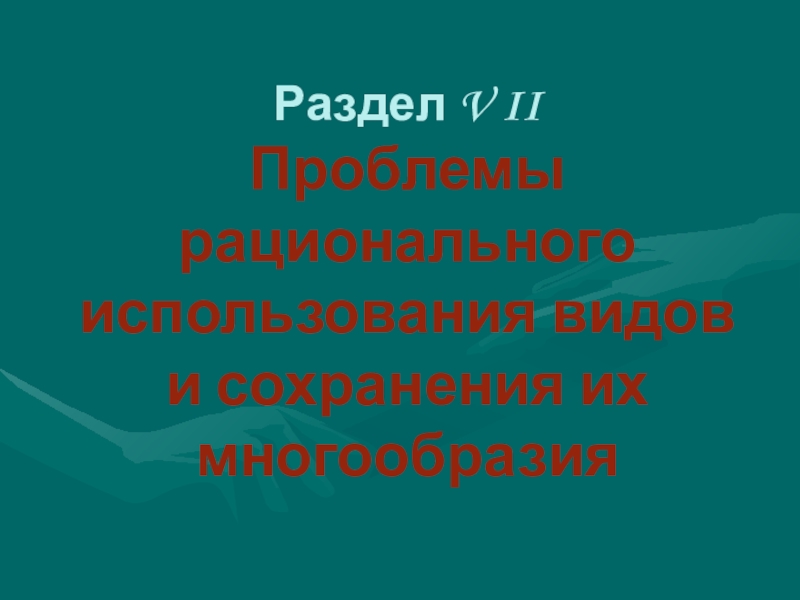 Раздел VII «Проблемы рационального использования видов и сохранения их многообразия»