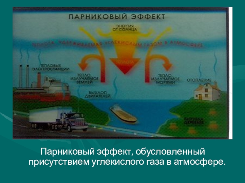 Парниковый эффект, обусловленный присутствием углекислого газа в атмосфере.