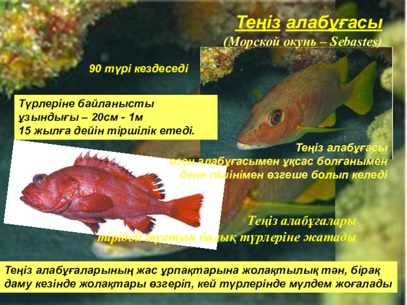 Теңіз алабұғаларының жас ұрпақтарына жолақтылық тән, бірақ