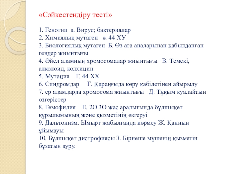 3. Биологиялық мутаген Б. Өз ата аналарынан қабылданған гендер жиынтығы