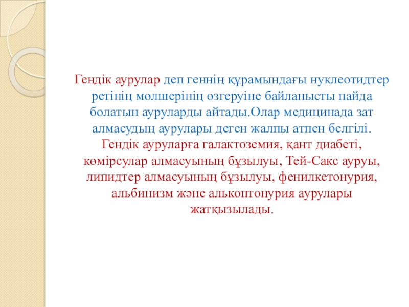 Гендік аурулар деп геннің құрамындағы нуклеотидтер ретінің мөлшерінің өзгеруіне байланысты пайда