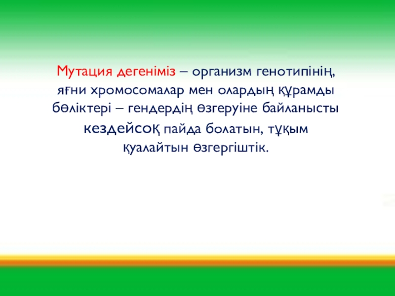 Слайд 4Мутация дегеніміз – организм генотипінің, яғни хромосомалар мен олардың құрамды бөліктері