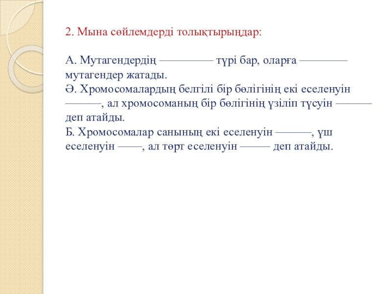 Слайд 112. Мына сөйлемдерді толықтырыңдар: