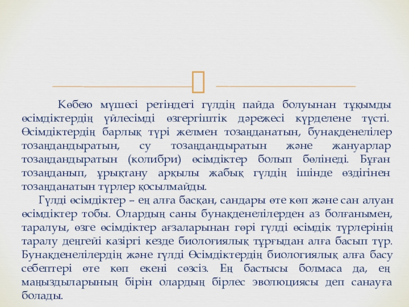 Слайд 25 Көбею мүшесі ретіндегі гүлдің пайда болуынан тұқымды өсімдіктердің