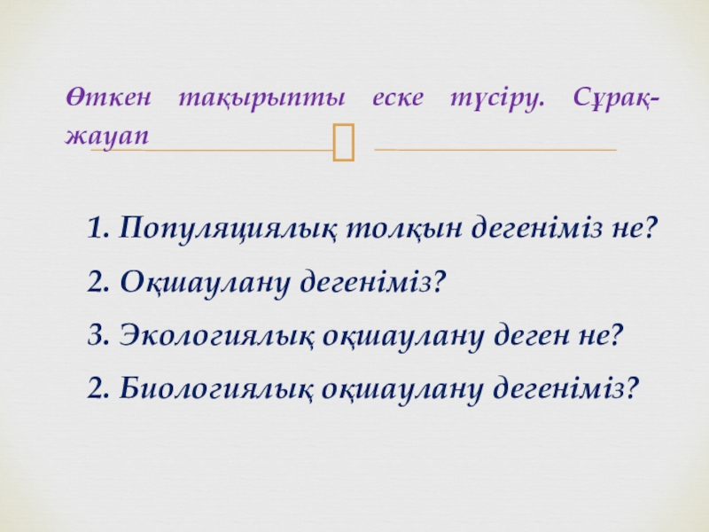 Слайд 3Өткен тақырыпты еске түсіру. Сұрақ-жауап