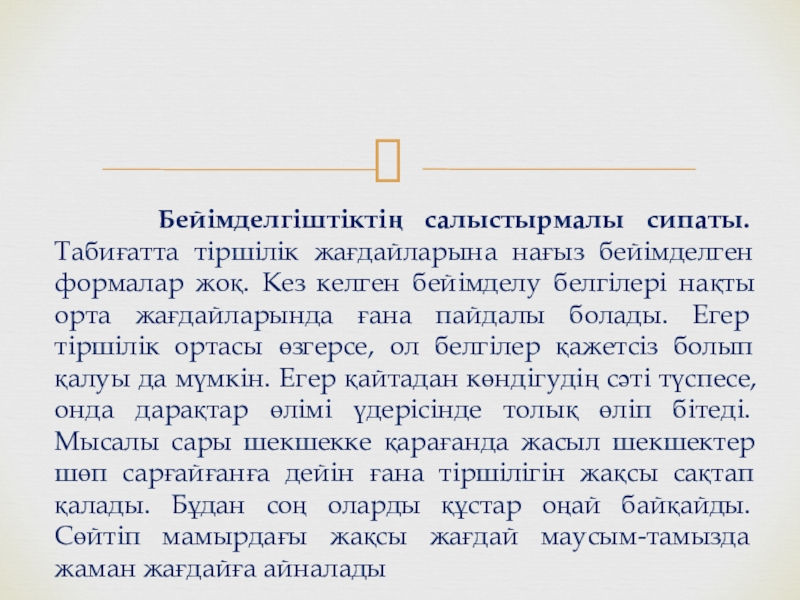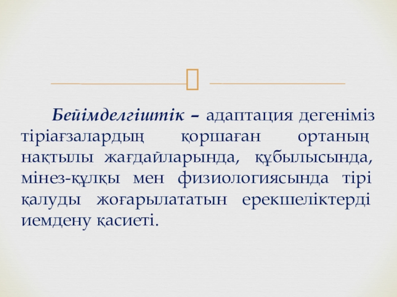 Слайд 8 Бейімделгіштік – адаптация дегеніміз тіріағзалардың қоршаған ортаның нақтылы
