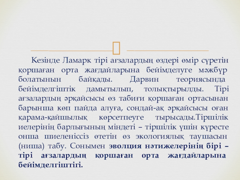 Слайд 9 Кезінде Ламарк тірі ағзалардың өздері өмір сүретін қоршаған