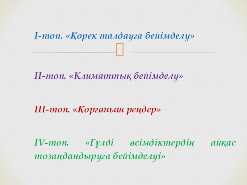 Слайд 29I-топ. «Қорек талдауға бейімделу»