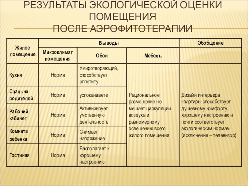 Слайд 19РЕЗУЛЬТАТЫ ЭКОЛОГИЧЕСКОЙ ОЦЕНКИ ПОМЕЩЕНИЯ