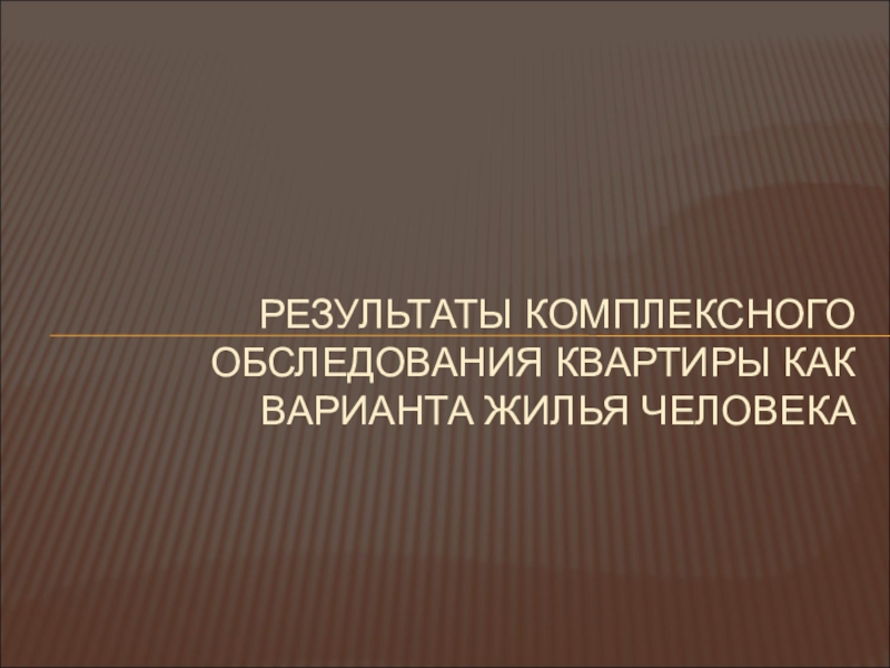 Слайд 9РЕЗУЛЬТАТЫ КОМПЛЕКСНОГО ОБСЛЕДОВАНИЯ КВАРТИРЫ КАК ВАРИАНТА ЖИЛЬЯ ЧЕЛОВЕКА