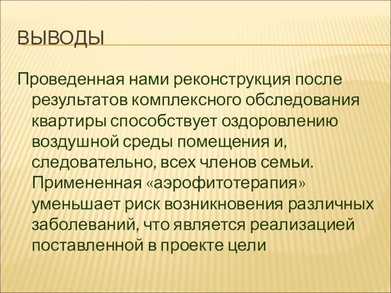 Проведенная нами реконструкция после результатов комплексного обследования квартиры способствует оздоровлению воздушной
