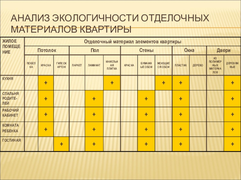 Слайд 12АНАЛИЗ ЭКОЛОГИЧНОСТИ ОТДЕЛОЧНЫХ МАТЕРИАЛОВ КВАРТИРЫ