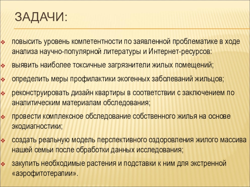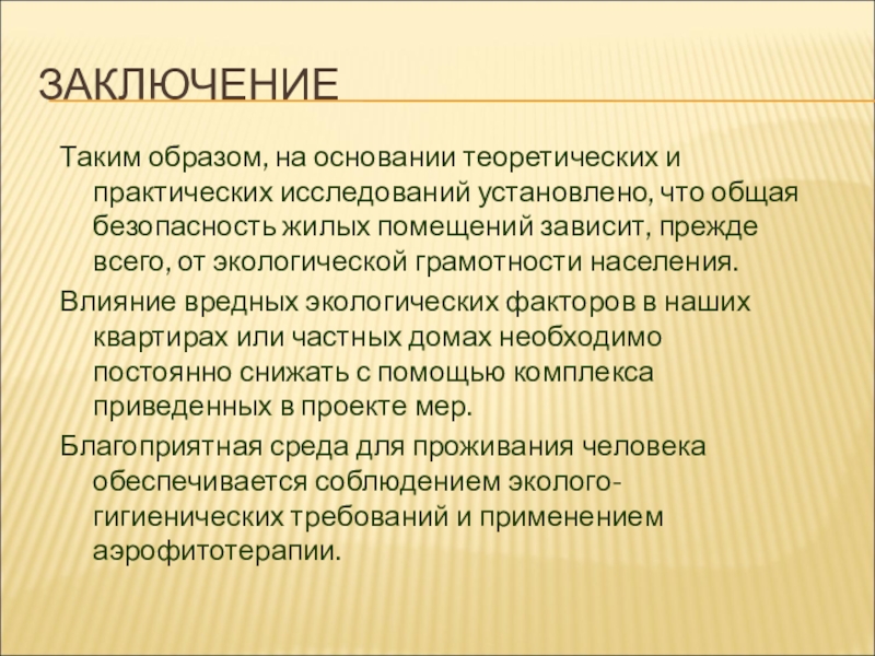 Влияние вредных экологических факторов в наших квартирах или частных домах необходимо постоянно снижать с помощью комплекса приведенных в проекте мер.
