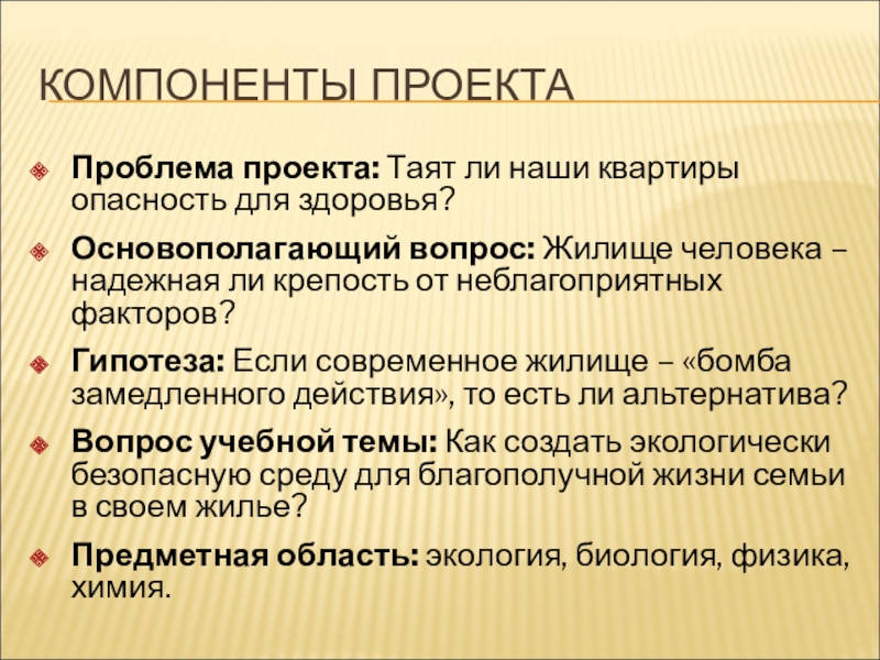 Проблема проекта: Таят ли наши квартиры опасность для здоровья?