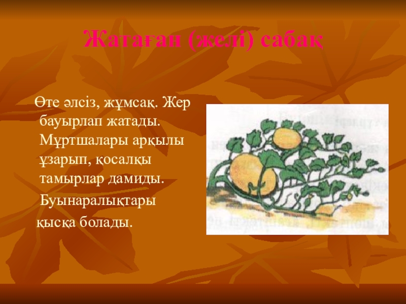 Слайд 13Жатаған (мұртша) сабақ