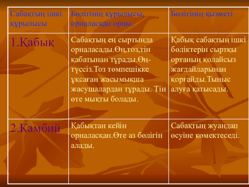 1.Ағаш сабағының ішкі құрылысының көп бөлігін алып жатқан қабаты.