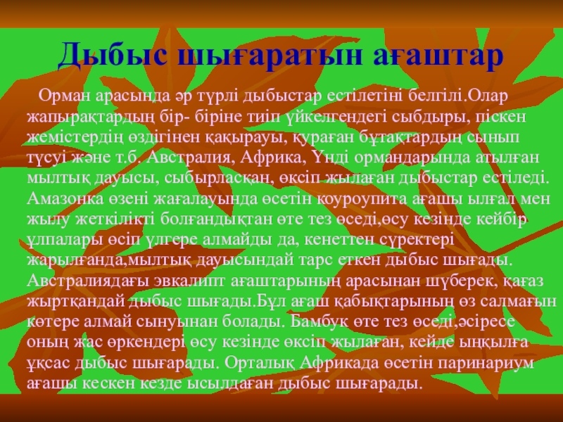 Слайд 26Дыбыс шығаратын ағаштар