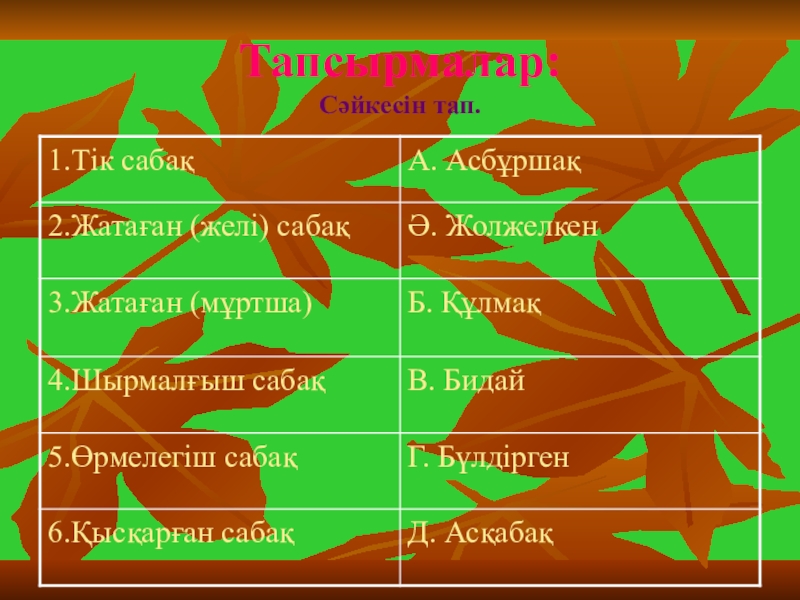 Слайд 9Жатаған (желі) сабақ