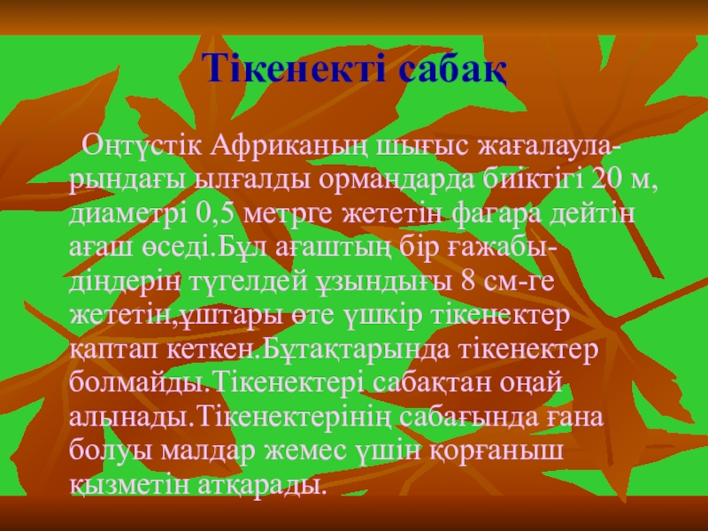 Слайд 28Тікенекті сабақ