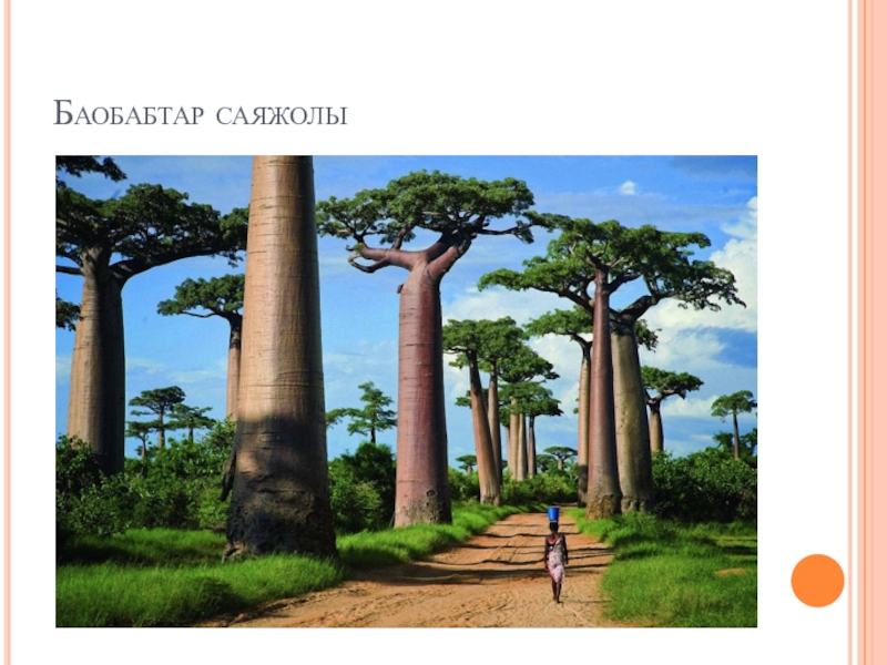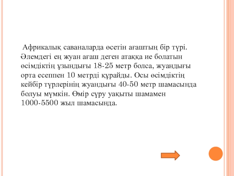 Слайд 13 Африкалық саваналарда өсетін ағаштың бір түрі. Әлемдегі ең жуан