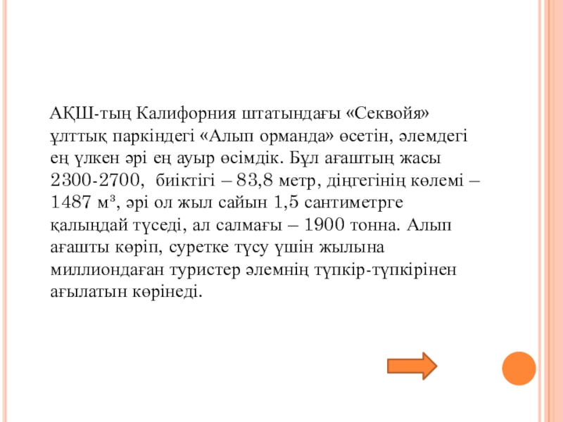 Слайд 14 АҚШ-тың Калифорния штатындағы «Секвойя» ұлттық паркіндегі «Алып орманда» өсетін,