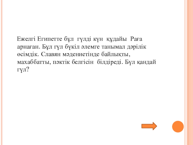 Слайд 22 Ежелгі Египетте бұл гүлді күн құдайы Раға арнаған. Бұл