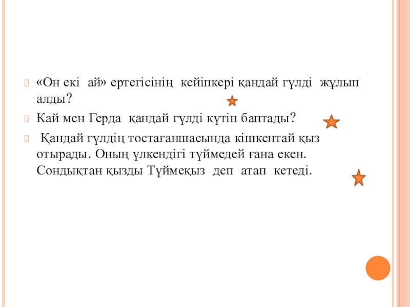 Слайд 40«Он екі ай» ертегісінің кейіпкері қандай гүлді жұлып алды?