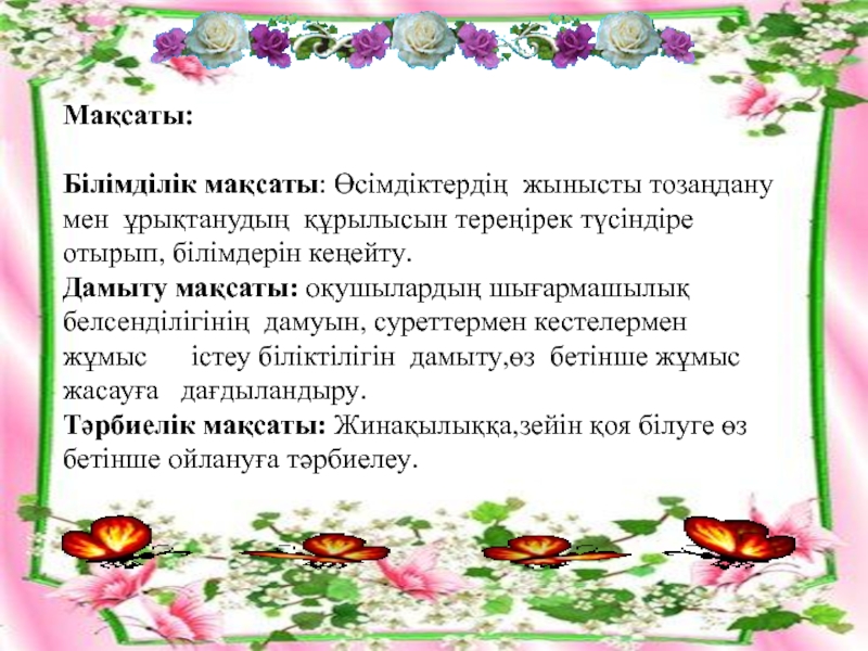 (алма, өрік, шабдалы, жөке ағаштары, итмұрын т.б.)