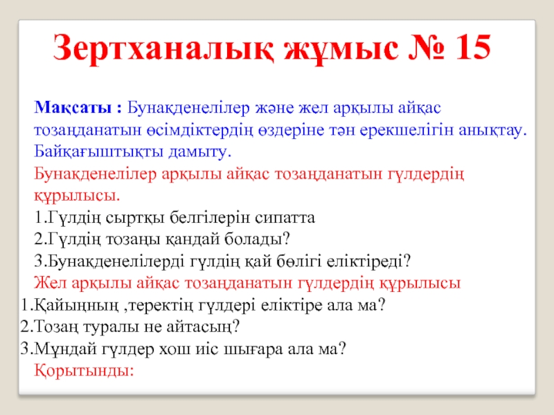 в) аңқыған хош иісі болмайды . Гүлсеріктері өзгеріске ұшыраған, тозаңының